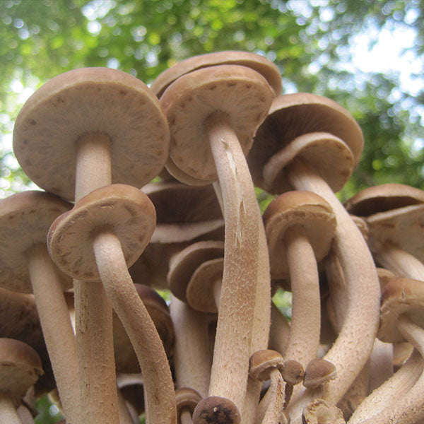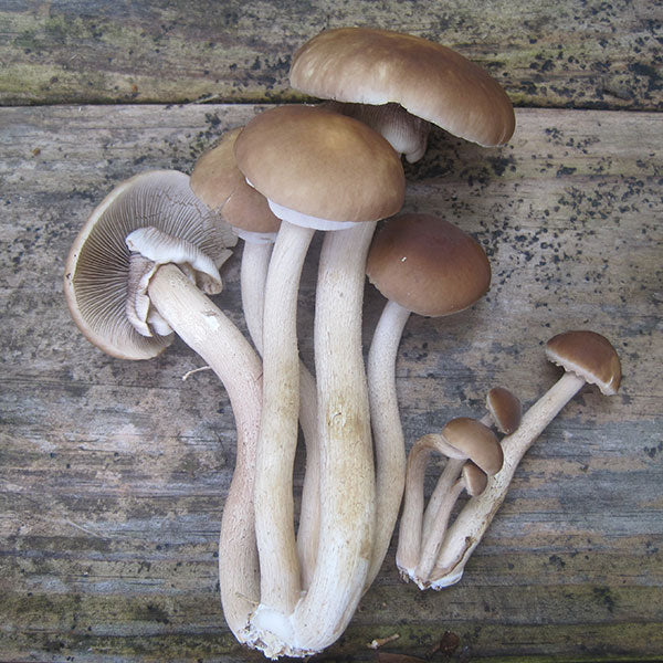 Black Poplar (Agrocybe aegerita), or “Pioppino” in Italian, is a clustering, meaty mushroom with a nutty and crunchy flavor, it prefers hardwood logs half buried lengthwise in a wooded or garden setting that is shady and can sometimes naturalize into wood chip piles outdoors. Will also fruit on supplemented, sterilized sawdust indoors. This mushroom has shown a significant immune boosting function concentrating on anti-fungal properties. Another delicious, edible medicinal mushroom! This one can be chopped and sautéed in oil and pepper, sprinkled onto a cold salad with feta cheese and a herbal vinaigrette. Also wonderful sautéed and added to gravies for meat dishes. Approximately 100 plugs by weight.
