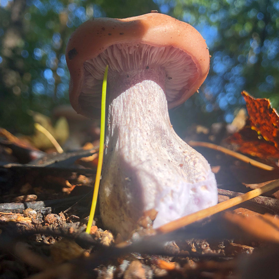 Also known as wood blewit, this type of Lepista is native to Europe. It has a fuzzy blue coloration at the base of its stem, therefore adopting the name Bluefoot. it is similar to the widely cultivated Blewit - Lepista nuda. Beautiful purple-lilac caps. Spore print is white, this one can resemble a Cortinarius (spore print rusty orange) so take a spore prints and no problems! Appr. weight: 5 lb.
