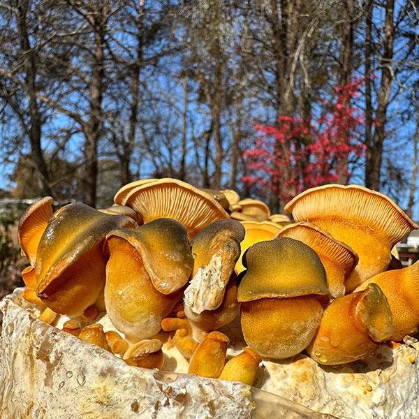 This galaxy colored mushroom with greenish yellow and violet tinge hues is one of the most delicious mushrooms out in the woods. It has yellow tightly packed gills and it resembles oyster mushrooms, although they are not related at all. It fruits in the cooler weather usually on dead sugar maples, beech and oak. You will find it in the wild late fall. Its fruiting window is October-December. It is native to North America.