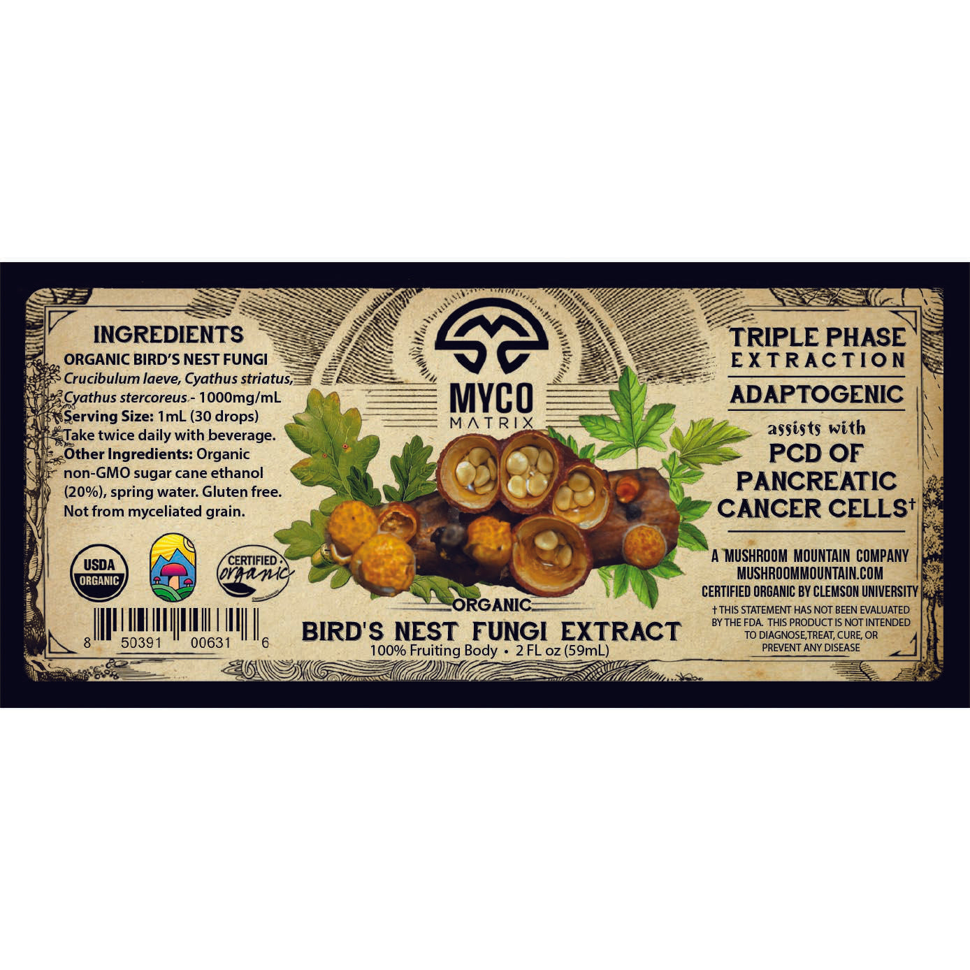 PURE • Mycomatrix prioritizes potency and purity, strictly using only whole fruiting bodies, never myceliated grain. Our extracts contain organic, non-GMO sugar cane ethanol and local, natural spring water. Our process ensures a potent extraction that is also gluten free.