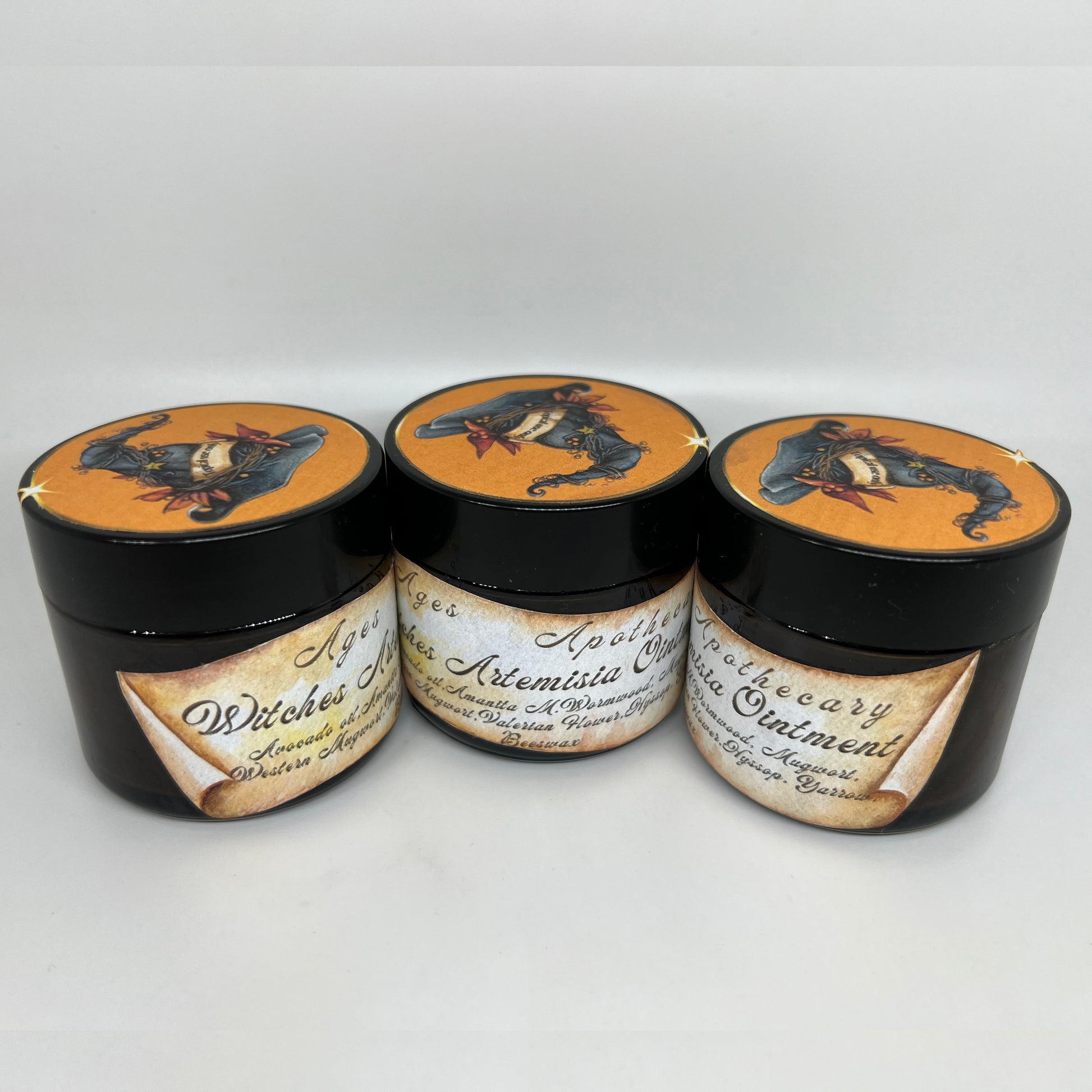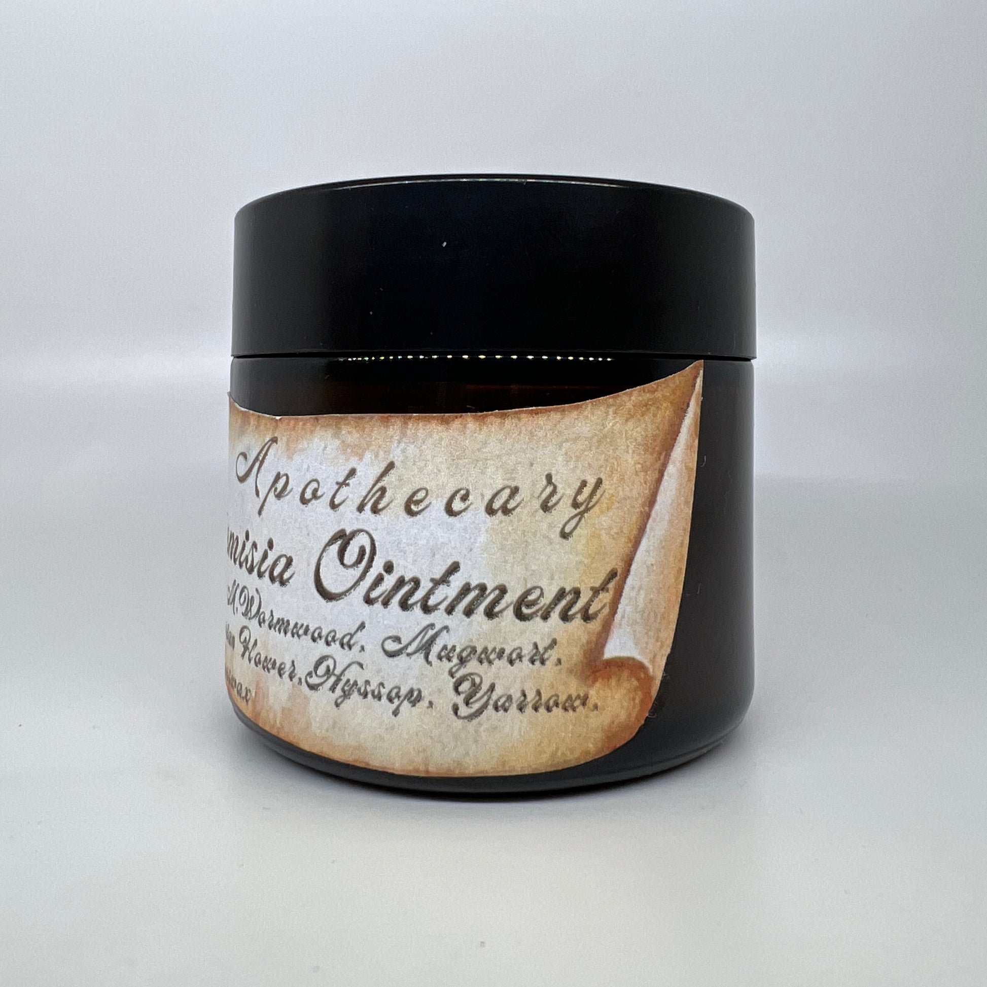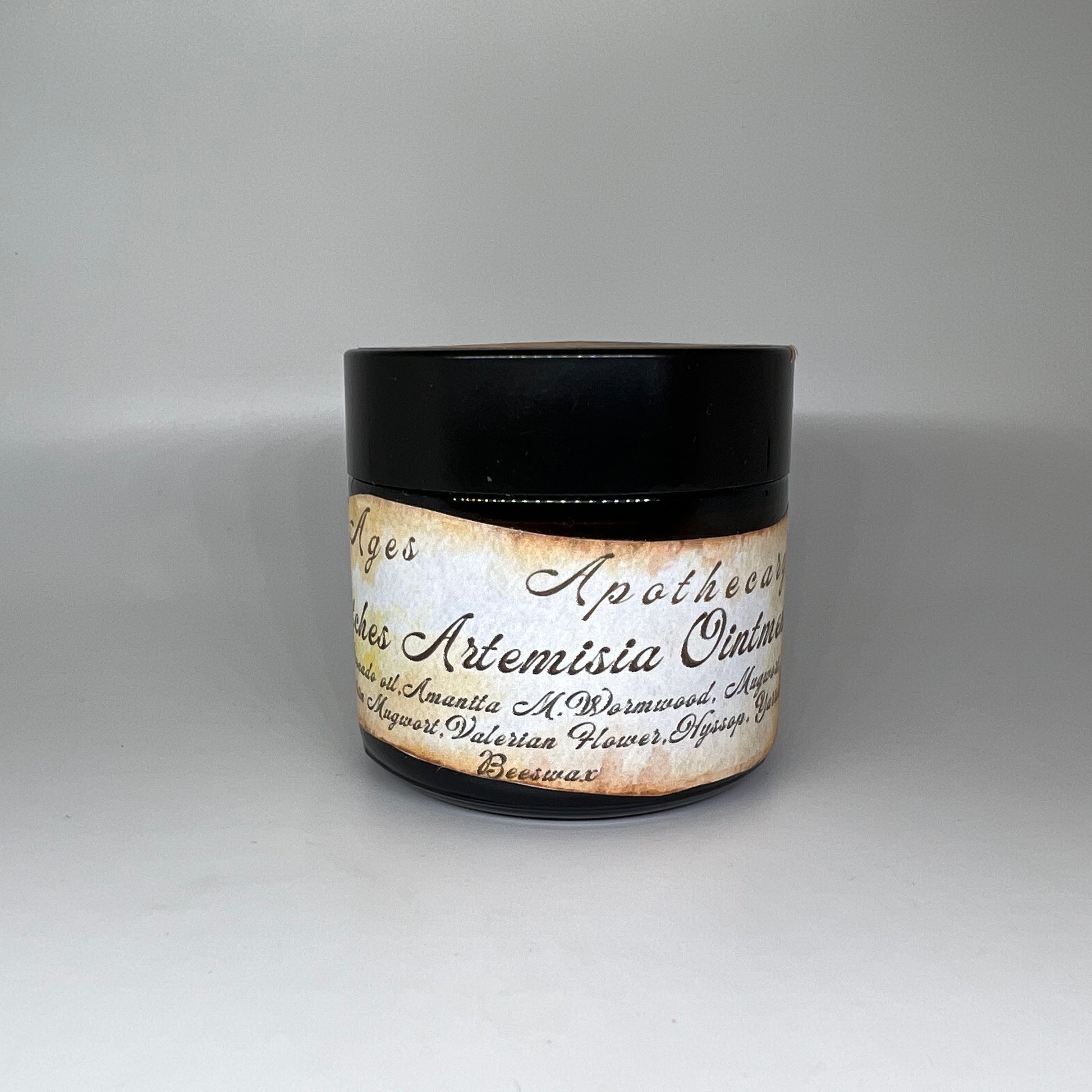 A seasonal blend of Amanita M. Wormwood, Mugwort, Western Mugwort, Yarrow, Valerian Flower, Hyssop. With a Spray of Local Absinthe. Infused into Avocado oil and Beeswax.